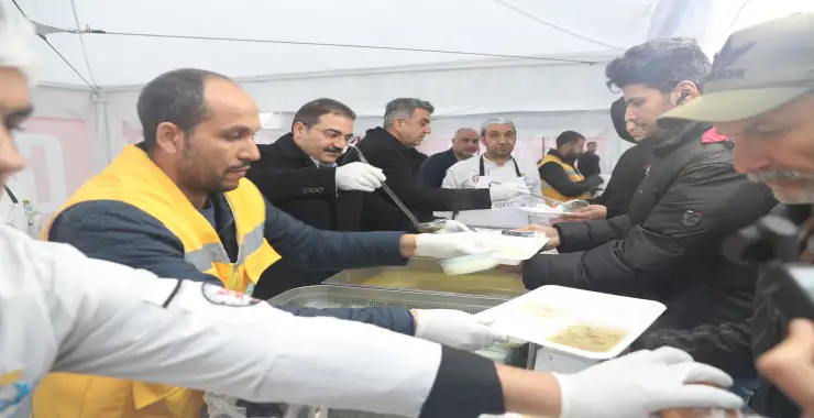 Necmettin Cevheri Parkı’nda kurulan iftar çadırında yüzlerce kişi, dualar ve ilahiler eşliğinde akşam ezanını bekledi. Ezanın okunmasıyla birlikte oruçlar açılırken, Başkan Canpolat ve İl Başkanı Günbeği de vatandaşlara yemek ikramında bulunarak iftarlarını hemşehrileriyle birlikte yaptı.