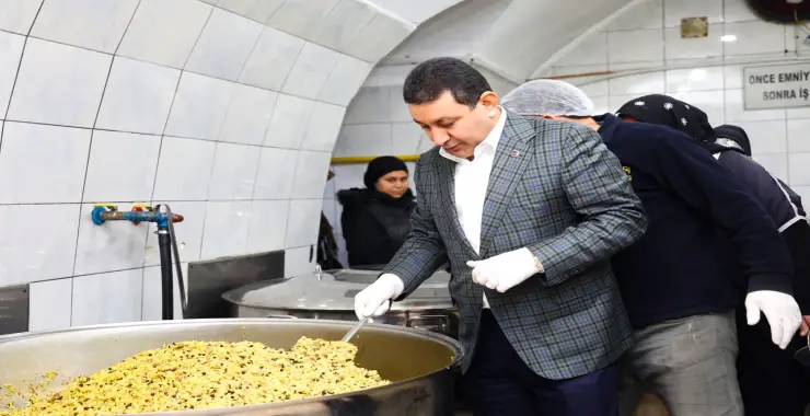 Harran Belediye Başkanı Mahmut Özyavuz, mübarek Regaip Kandili dolayısıyla Şanlıurfa Aşevi Derneği’nin düzenlediği yemek dağıtım programına katıldı. Dernek Başkanı Ali Topal’ın davetine sessiz kalmayan Başkan Özyavuz kendi elleriyle ihtiyaç sahiplerine yemek dağıttı.