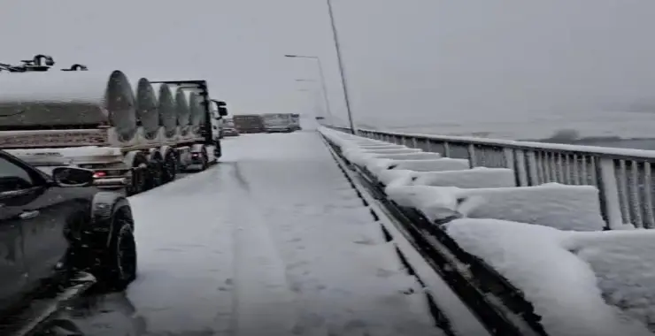 Şanlıurfa’da bir gün aradan sonra yaşanan kar yağışı hayatı olumsuz etkiledi. Kar kimine eğlence olurken kimilerine ise eziyet oldu. Şanlıurfa’nın Birecik İlçesinde Fırat nehri üzerinde bulunan köprüde uzun araç kuyruğu oluştu.