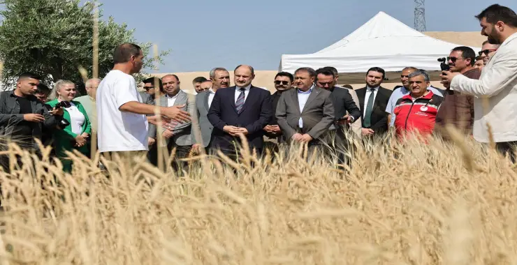 Protokol üyeleri, geleneksel yöntemlerle gerçekleştirilen buğday ekili alanı gezdi. Ardından düzenlenen buğday sergisi ve bulgur yapımı gösterisi, yerel tarım kültürünün yaşatılmasına sahne oldu.