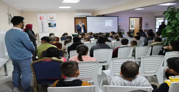 Şanlıurfa Eğitim ve Araştırma Hastanesi İdari ve Mali İşler Müdür Yardımcısı Hüseyin Tekdemir tarafından verilen seminerde; “Bağımlı Olma, Özgür Ol” temasıyla düzenlenen programda; çocuklara teknolojiyi hayatlarını sınırlayan değil, geliştiren bir araç olarak kullanmaları, ekran süresi dengesi kurmaları ve dijital dünyada bilinçli bireyler olmaları hedeflendi.