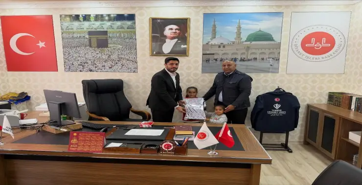 Müftü Ertürk, daha sonra Dilek ve Reyhan kardeşleri aileleriyle birlikte makamında misafir etti. Bu anlamlı davranışlarından dolayı aileye teşekkür ederek, çocuklara çeşitli hediyeler takdim etti.