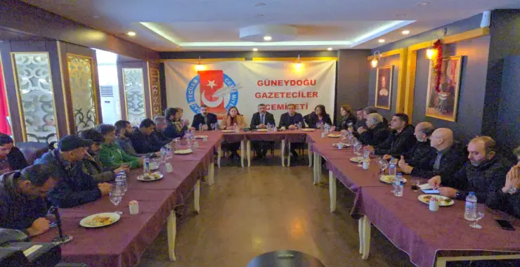 Heyeti, Güneydoğu Gazeteciler Cemiyeti Başkanı Felat Bozarslan, yönetim kurulu üyeleri ve çok sayıda gazeteci karşıladı.