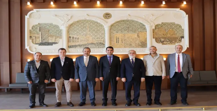 GAP Bölge Kalkınma İdaresi Başkanı Hasan Maral, KOSGEB Önceki Dönem Başkanı Erkan Gürkan, GAP Bölge Kalkınma İdaresi Koordinatörü Ahmet Tokdemir, Migros Temel Gıda Pazarlama Direktörü Harun Reşit Kurul ve Migros Bölge Satınalma ve Projeler Müdürü Gökhan Çopuroğlu’ndan oluşan heyet, Yönetim Kurulu Başkanı Mehmet Kaya’ya nezaket ziyaretinde bulundu. Ziyarete Genel Sekreter Mehmet Durmuş ile Genel Sekreter Yardımcısı Ayşe Çadırcı Kandemir de katıldı.
