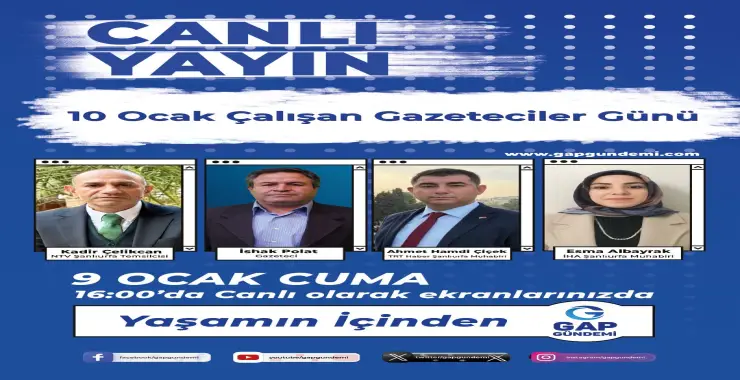 10 Ocak Çalışan Gazeteciler Günü dolayısıyla GAPGündem Dijital yayında anlamlı bir program izleyicilerle buluşacak. Şanlıurfa’da faaliyet gösteren gazeteciler “Yaşamın İçinden” programında gazetecilik mesleğine ilişkin düşüncelerini izleiyciller ile paylayacak.