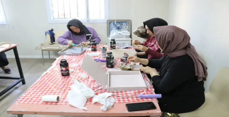 El sanatları atölyesinde üretim yapan Nuran Özkutlu da duyduğu memnuniyeti şu sözlerle aktardı: “Burada hocalarımız ve arkadaşlarımızla çok güzel ürünler çıkarıyoruz. Bu imkanı bize sağlayan belediye başkanımız Mehmet Canpolat’a ve hocalarımıza teşekkür ederiz.”