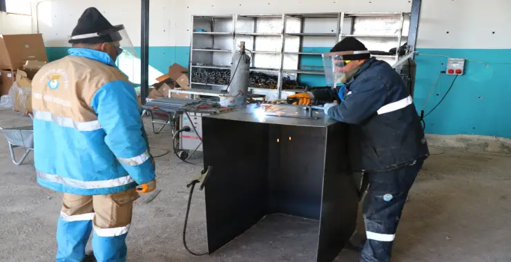 Belediye Başkanı Mehmet Canpolat’ın talimatlarıyla hayata geçirilen üretim tesisleri sayesinde belediye, öz kaynaklarını daha verimli kullanarak önemli ölçüde tasarruf sağlıyor. Bu kapsamda çalışmalarını sürdüren Temizlik İşleri Müdürlüğü, kendi üretim tesisini kurarak çöp konteyneri üretimine başladı.