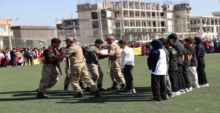 Öğrenci ve öğretmenler tarafından hazırlanan şiir okuma, zeybek oyunu, halk oyunu ve farklı branştaki birçok gösterinin sergilendiği kutlamaları Harran Belediye Başkanı Mahmut Özyavuz, Harran Kaymakamı Harun Reşit Han, Harran Cumhuriyet Savcısı Volkan Akşit ilçe protokolü, gazi ve şehit ailelerinin yanında ilçe halkı ilgiyle takip etti.