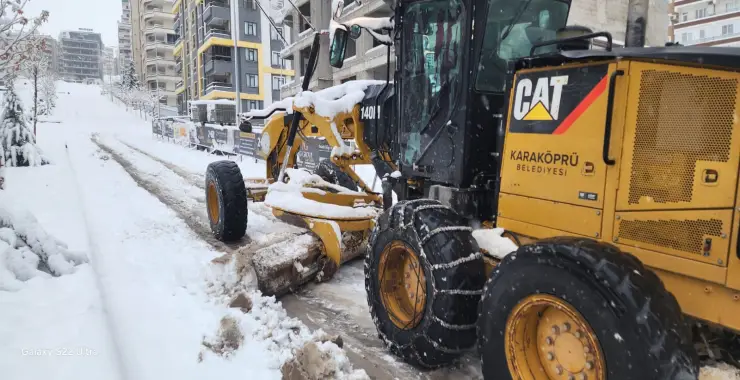 Kent genelinde etkisini artıran kar yağışının günlükyaşamı olumsuz etkilememesi amacıyla tüm imkânlarını seferber eden KaraköprüBelediyesi, başta ana arterler ve bağlantı yolları olmak üzere mahalle içigüzergâhlarda yoğun bir çalışma yürütüyor.