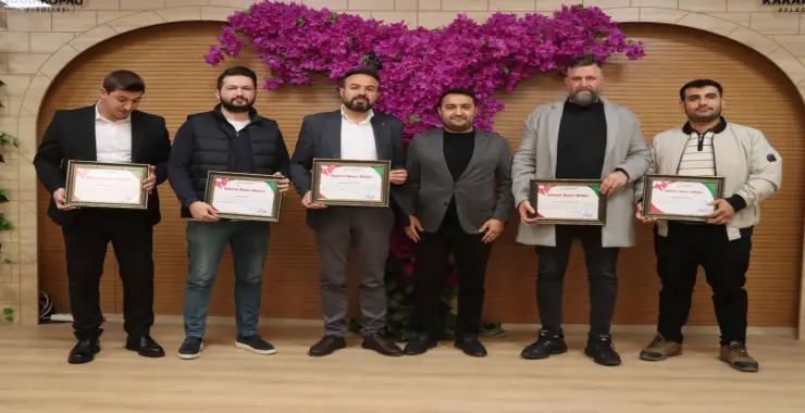 Konuşmaların ardından Başkan Çiftçi ve protokol üyeleri tarafından belirlenen 66 işletmenin temsilcilerine sektörel başarı belgeleri takdim edildi. Sektörel Başarı Belgesine layık görülen esnaflar da nazik düşünceleri ve destekleri için Karaköprü Belediye Başkanı Nihat Çiftçi’ye teşekkürlerini ilettiler.