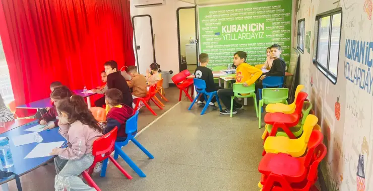 Diyanet İşleri Başkanlığı Eğitim Hizmetleri Genel Müdürlüğü öncülüğünde hayata geçirilen projeyle, camisi yıkılan mahallelerdeki çocuklara geçici ama kapsamlı bir dini eğitim ortamı sunuluyor.