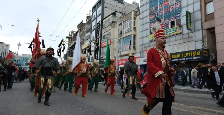 Divanyolu Caddesi’nde, Jandarma Mehteran Birliği eşliğinde düzenlenen yürüyüşe; kent protokolü, sivil toplum kuruluşlarının temsilcileri ve çok sayıda vatandaş katıldı. Mehteran takımının seslendirdiği marşlar eşliğinde ilerleyen kortejde, milli birlik ve beraberlik duyguları ön plana çıktı. Yol boyunca vatandaşlar, ellerindeki Türk bayraklarıyla korteje destek verirken, marşlara hep bir ağızdan eşlik etti.
