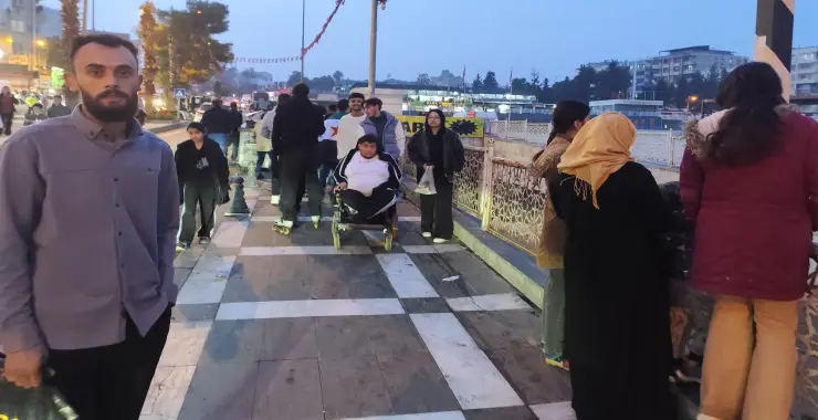 Akşam saatlerinde Topçu Meydanı çevresinde bir araya gelen kalabalık, ellerinde Suriye bayraklarıyla beklemeye başladı.