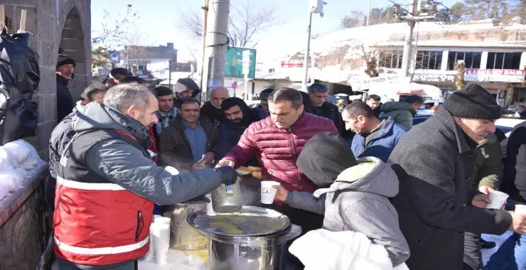 Siverek Belediyesi, kar yağışının etkili olduğu süreç boyunca yürütülen çalışmalar kapsamında 18 noktada 10 bin vatandaşa çorba, sandviç ve lahmacun ikramında bulundu.