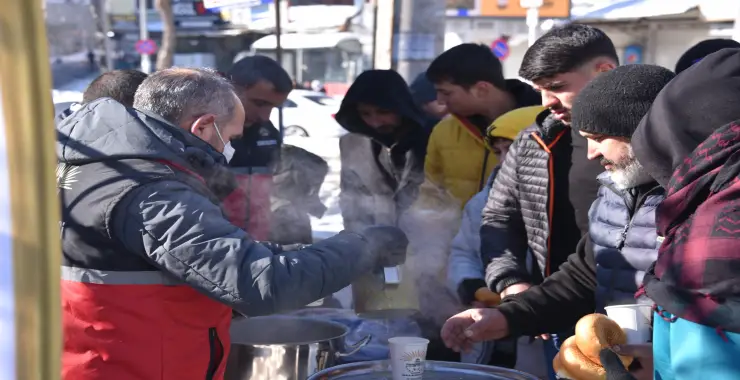 Kar yağışının devam ettiği süreçte ve sonrasında ikramlarını sürdüren belediye ekipleri, 3 gün boyunca 18 noktada vatandaşlara çorba, sandviç ve lahmacun dağıttı.