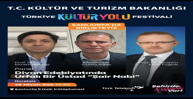 Kültür Bakanlığının Türkiye kültür yolu festivali Şanlıurfa durağında efsane şair Urfalı Yusuf Nabi Türkiye Yazarlar Birliği Şanlıurfa Şubesinin katılımıyla düzenlenen bir panelle anılacak.