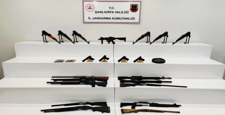 Takipli KOM faaliyeti kapsamında 22 Ocak 2026 tarihinde Şanlıurfa’nın Viranşehir ilçesinde bulunan 9 ayrı adrese eş zamanlı adli arama gerçekleştirildi. Yapılan aramalarda; 6 adet Kalaşnikof piyade tüfeği, 1 adet makineli tabanca (Akrep), 4 adet ruhsatsız tabanca, 10 adet ruhsatsız av tüfeği, 20 adet şarjör, 639 adet çeşitli çap ve ebatlarda mühimmat ele geçirildi.